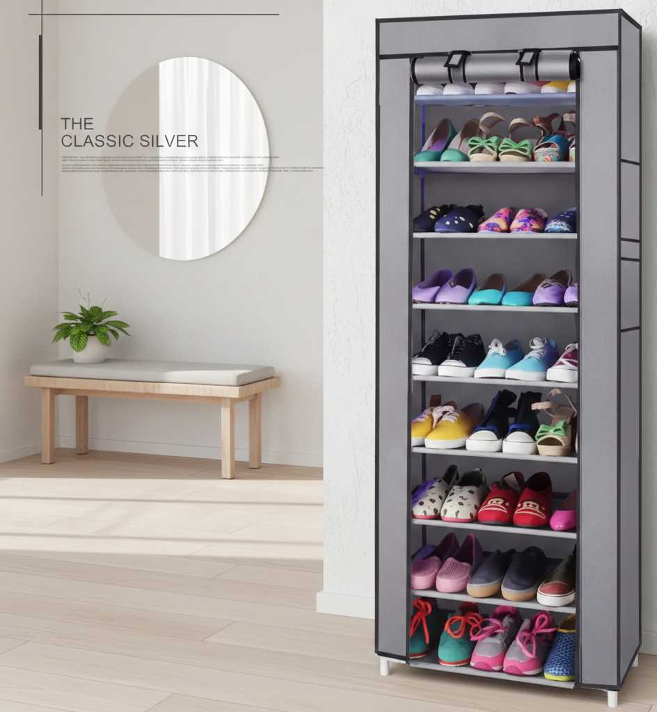 Keep your footwear neatly organized and protected with the 10 Layer Covered Shoe Rack. Designed to maximize vertical space, this practical storage unit offers ample room for 20 or more pairs of shoes while maintaining a clean and clutter-free look. Its slim profile makes it ideal for entryways, bedrooms, closets, dorm rooms, or apartments.