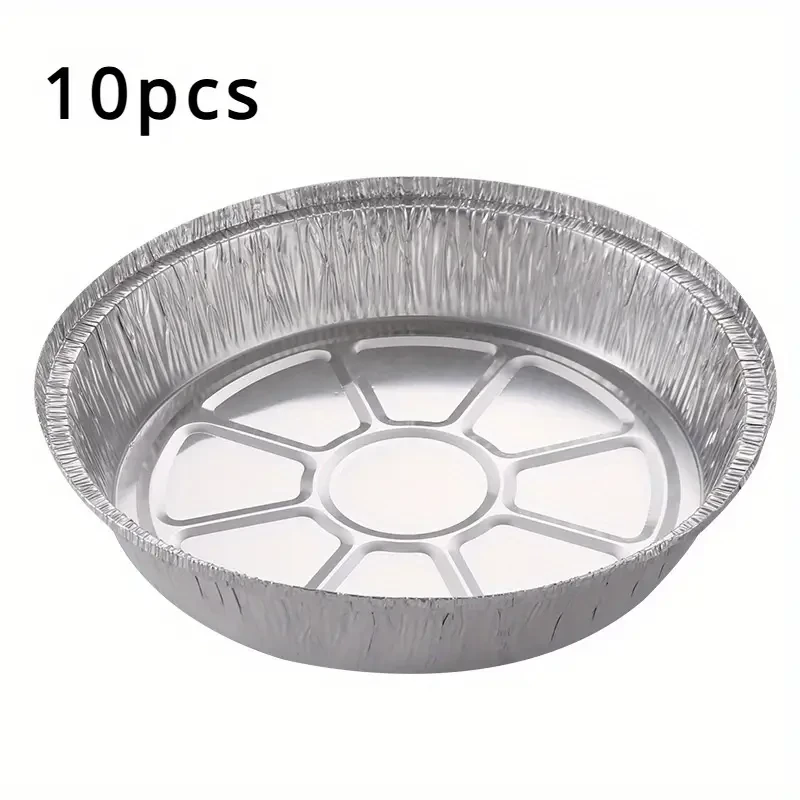 The 10 Pcs Round Aluminum Foil Bowl set is perfect for baking, cooking, serving, and storing food. Made from high-quality aluminum foil, these bowls are heat-resistant, lightweight, and easy to use, making them ideal for home kitchens, parties, and takeaway purposes.