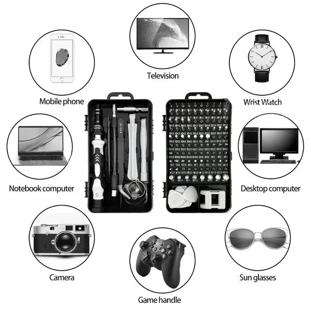 Be ready for any repair with the 115 Pcs Tool Kit .