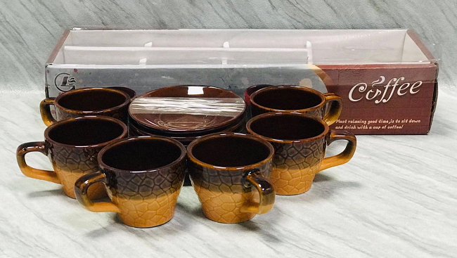Elevate your coffee or tea experience with this 12 Pcs Coffee Cup & Saucer Set – 352-12. Crafted from high-quality ceramic, each cup and saucer features a smooth finish and durable design, making it perfect for everyday use or special occasions.