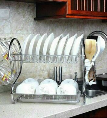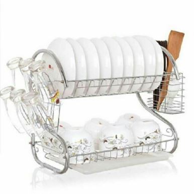 The 2 Layer 42cm Dish Rack is a compact and efficient kitchen organizer designed to dry and store dishes, utensils, and kitchen essentials after washing. With a dual-tier design, it maximizes space by separating plates, bowls, cups, and cutlery on two levels, promoting faster drying and better organization. Crafted from rust-resistant stainless steel and food-safe PP plastic, this durable dish rack ensures long-lasting performance and hygiene in any kitchen.