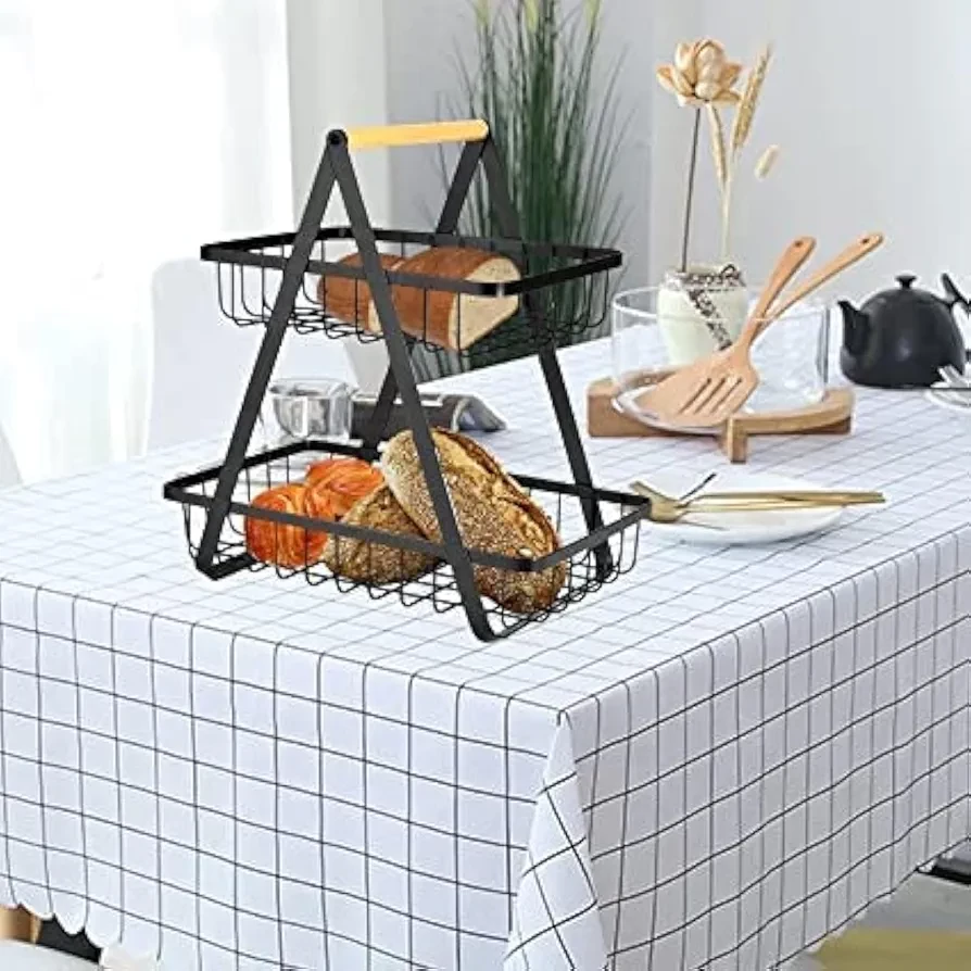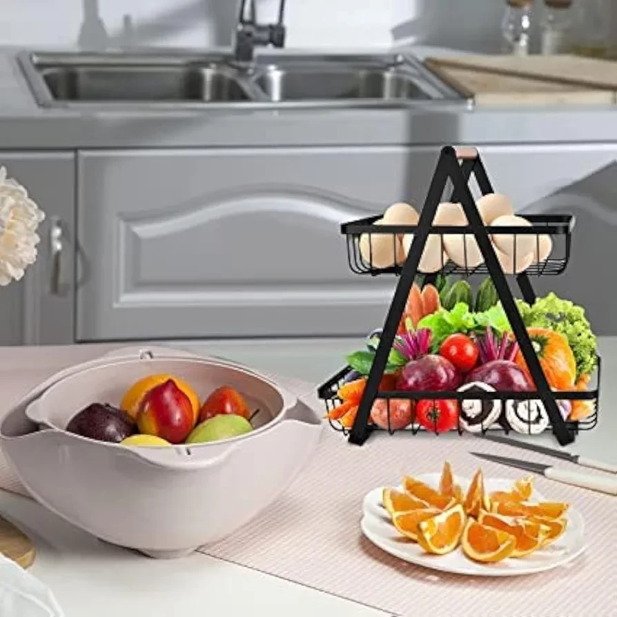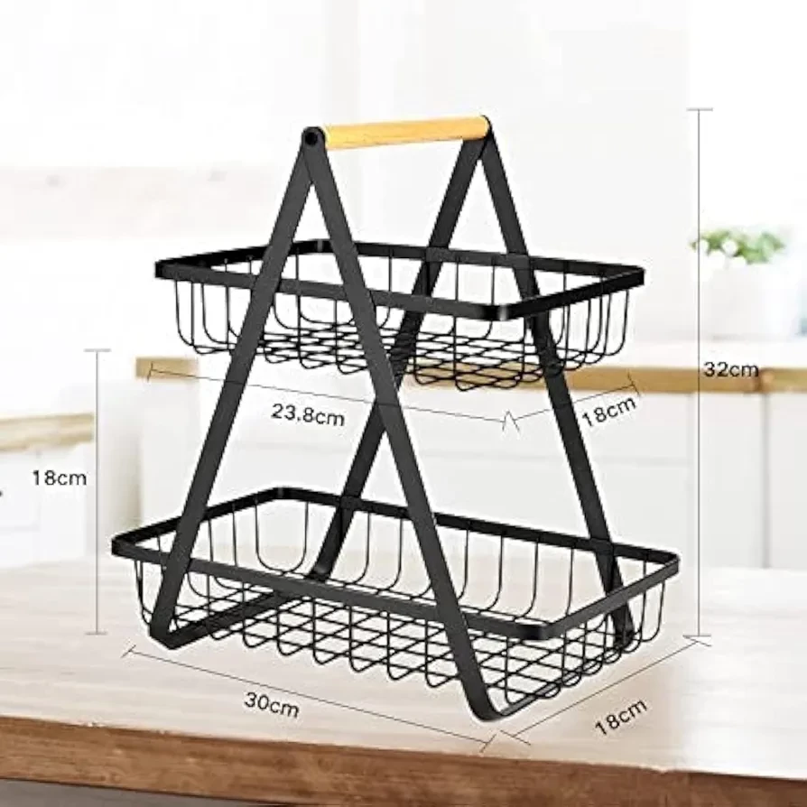 【2-Tier Countertop Basket】: The Basket is perfect for holding both fruits and vegetables, keeping your space organized and 2-tier design to create more storage space while cutting down on counter clutter.