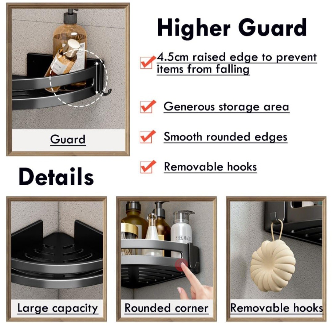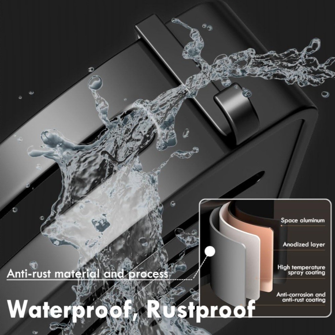 Rustproof Shower Caddy - Constructed with Aerospace-grade aluminum alloy with matte black coating, thick, durable, waterproof, non-fading, anti-rust and anti-corrosion, no worries in bathrooms and kitchens where it's always damp.