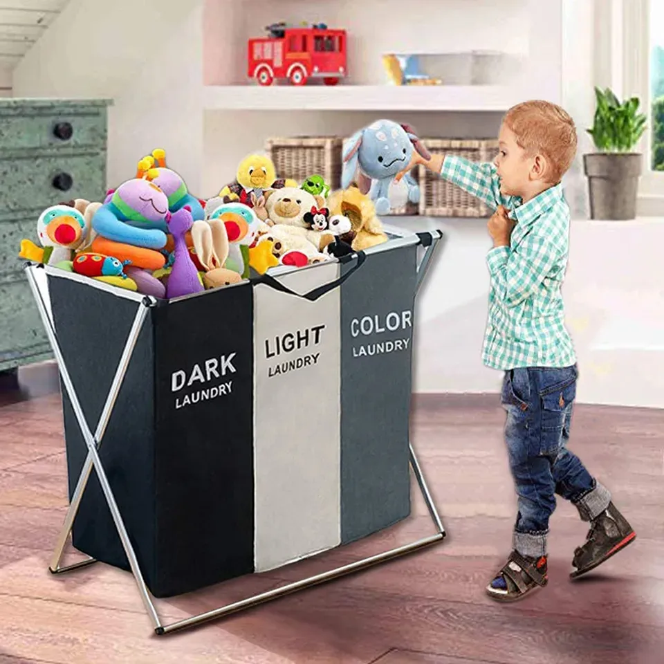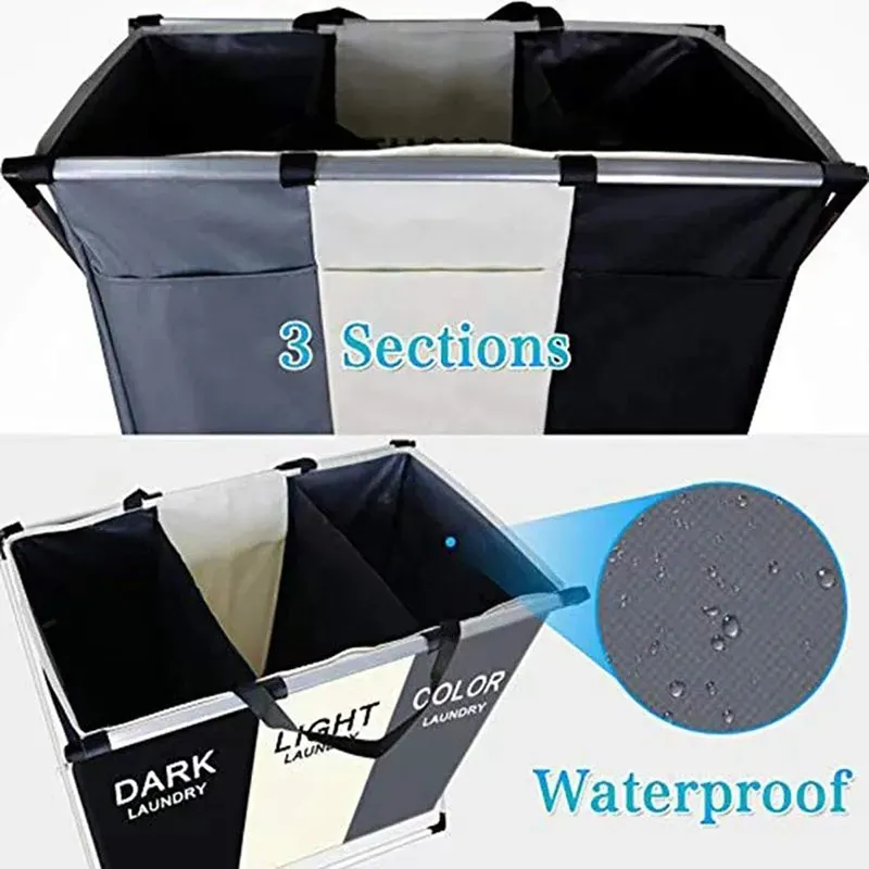 The 3 Section Laundry Basket is a practical and stylish laundry organizer designed to simplify sorting clothes by color or fabric type. Featuring three spacious, labeled compartments — “DARK LAUNDRY,” “LIGHT LAUNDRY,” and “COLOR LAUNDRY” — this basket helps you stay organized while keeping your laundry routine efficient. With its sturdy steel frame and durable Oxford cloth body, it’s perfect for bedrooms, bathrooms, or laundry rooms.