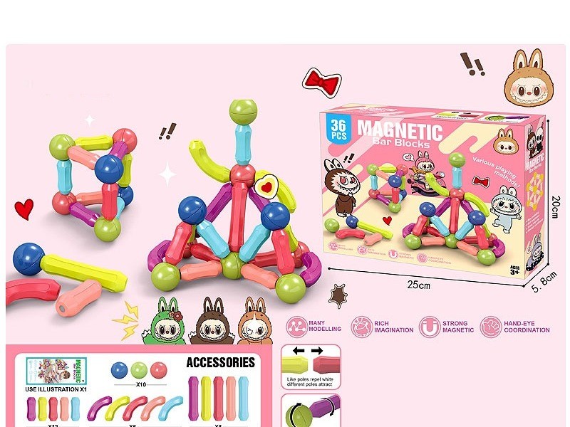 Inspire imagination and learning with the 36 Pcs Magnetic Bar Blocks (ACL02), available now at Saralaa Home Plus.