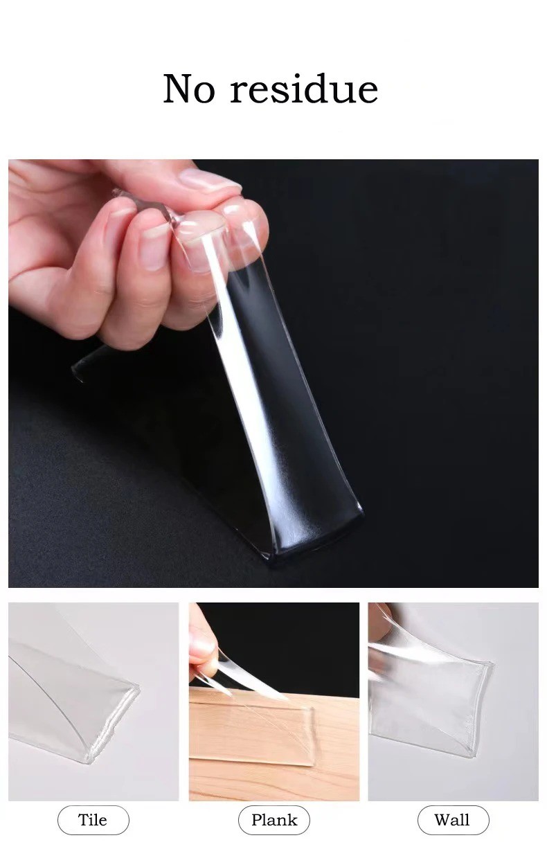 The 3M Nano Tape is a powerful double-sided adhesive tape designed for home, office, and DIY use. Its transparent, washable, and reusable design makes it ideal for mounting, fixing, and organizing without damaging surfaces. Perfect for walls, glass, tiles, wood, and metal, this nano gel tape ensures a strong hold with easy removal.