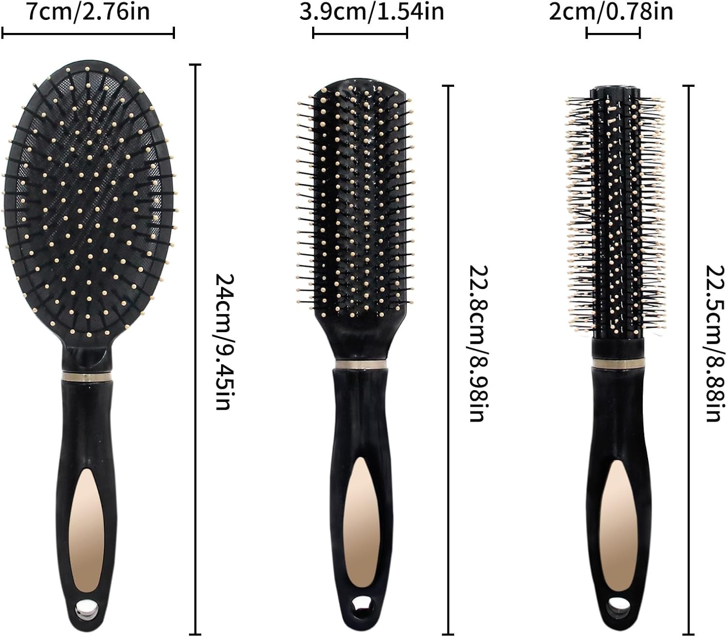Set Includes: 3 × Hair brushes, 1 × Comb