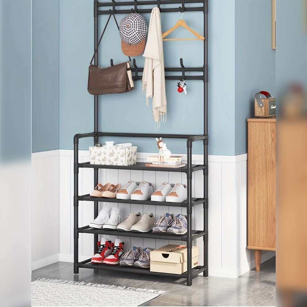 Keep your home neat, organized, and stylish with the 4 Layer Cloth & Shoe Rack TM4-60. Designed to maximize vertical storage, this versatile rack is perfect for entryways, bedrooms, hallways, or any space that needs efficient organization. With four spacious tiers, adjustable shelf spacing, and built-in hanging hooks, it’s ideal for shoes, boots, handbags, folded clothes, scarves, hats, and more. Its sturdy steel frame and modern finish ensure durability while complementing any home decor.
