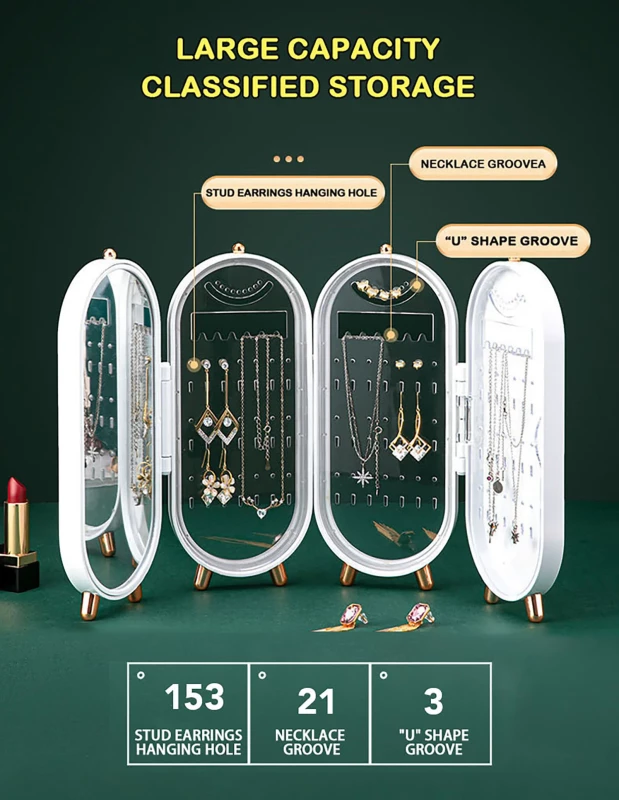 Perfect for home use or travel, this jewelry organizer combines elegance with practicality, ensuring your accessories remain beautifully displayed and well-protected.