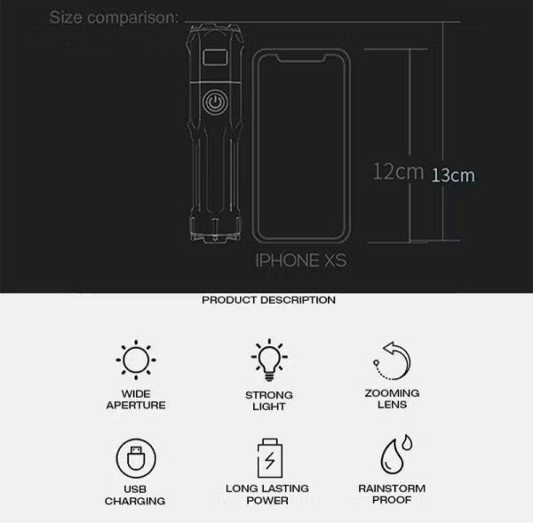 Illuminate your adventures with the 4 Lighting Mode Strong LED Flashlight Telescopic Zoom Tactical Torch. This versatile torch is designed for outdoor enthusiasts, emergency preparedness, and everyday use, delivering bright and adjustable lighting whenever you need it.