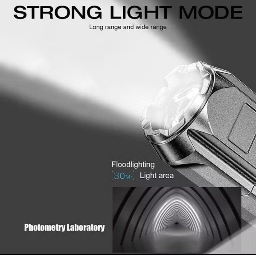 Four Lighting Modes: Switch between high, low, strobe, and SOS modes for powerful illumination, energy saving, or emergency signaling.