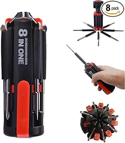 Make quick fixes easier with the 8 in 1 Screwdriver With Torch, a must-have tool for every home and office. This multifunctional screwdriver set includes 8 interchangeable screwdriver bits neatly packed into one compact design.