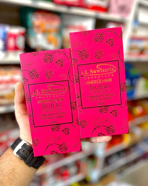 Experience the rich taste of Dubai’s confectionery excellence with Al Suwissria Kunafa & Pistachio Cotton Candy Chocolate 200g. This premium creation blends silky chocolate with crispy kunafa layers, crunchy pistachios, and a hint of cotton candy sweetness for a luxurious fusion of flavors.