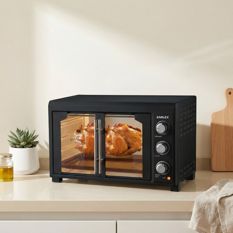 Stop struggling with small, inconsistent ovens that leave your meals undercooked. The AMILEX AEO-4601 Electric Oven is engineered for the home chef who demands professional-grade results. With its massive 46-liter capacity and robust 2000W power, this oven provides the space and intensity needed to roast a whole chicken to golden perfection or bake delicate pastries with precision. The high-quality stainless steel heating elements ensure that heat is distributed evenly throughout the chamber, eliminating cold spots and ensuring consistent textures for all your culinary creations. Whether you are hosting a large dinner party or prepping meals for the week, the AMILEX AEO-4601 offers the versatility and reliability required to elevate your kitchen game. Experience the convenience of a high-performance countertop oven that does not compromise on power or efficiency. Transform your kitchen today into a high-functioning bakery and rotisserie with this essential appliance.