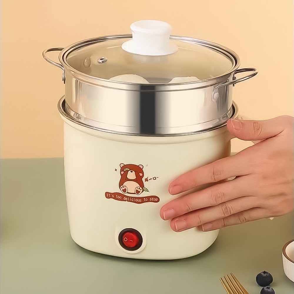 Simplify your cooking with the Aoweila 1.6L Electric Cooking Pot — a compact, versatile, and charming all-in-one appliance designed for boiling, steaming, frying, or simmering meals with ease. Featuring a stainless steel inner pot, tempered glass lid, and cute bear-themed design, this electric pot delivers consistent heat for everything from noodles and eggs to soups and stews. Available in pastel cream, pink, and blue, it’s perfect for dorms, small kitchens, offices, or as a travel companion. With its simple on/off switch and non-stick interior, it’s both functional and adorable.