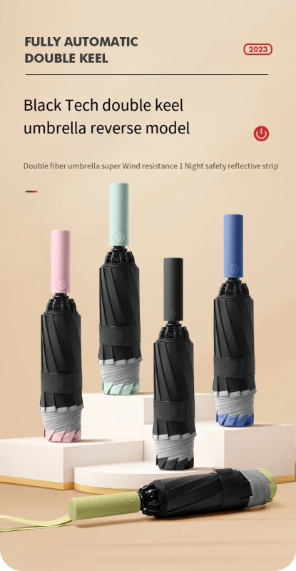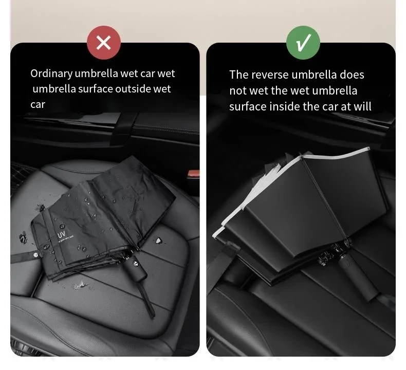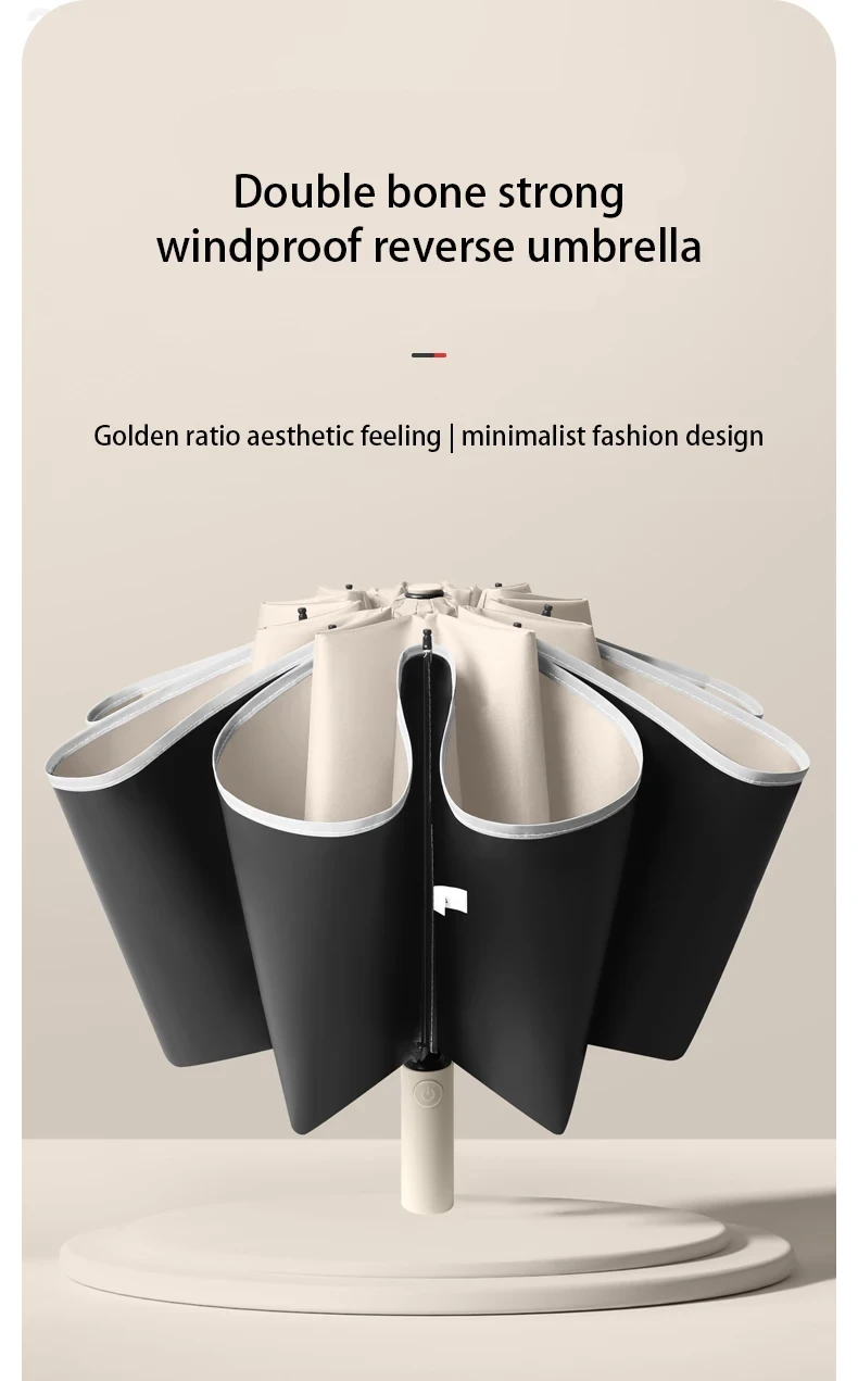 The reverse folding design prevents water from dripping when closed, keeping your floors, car, and belongings dry. The double-layer canopy provides excellent durability, while the ergonomic handle ensures a comfortable grip. Ideal for everyday use, commuting, travel, or outdoor activities, this umbrella combines style, strength, and convenience.