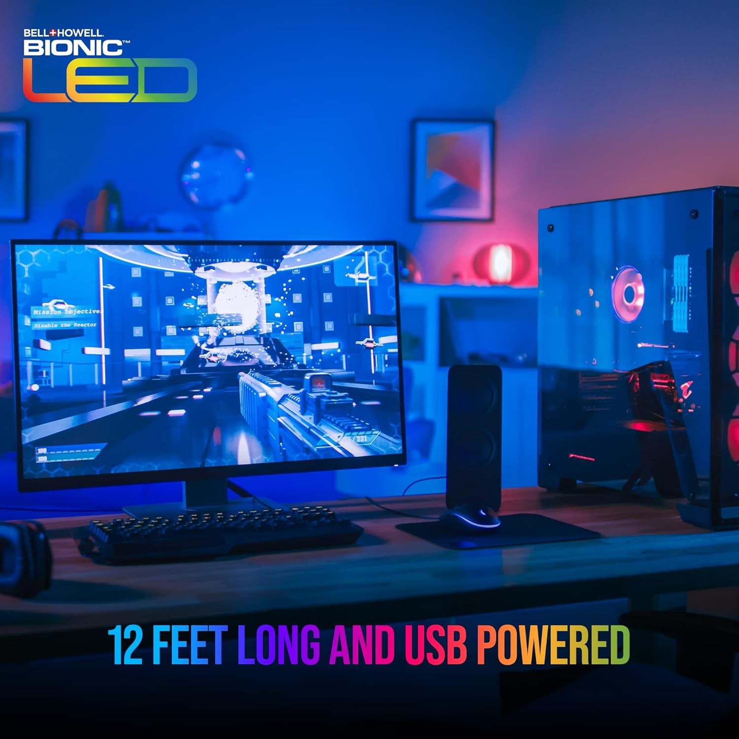 Bring your room to life with the Bionic LED Color Changing Strip Light - 16 Feet, designed to create stunning lighting effects and vibrant moods in any space. With multi-color RGB lighting and remote control functionality, you can easily adjust colors, brightness, and lighting modes to match your mood or occasion.