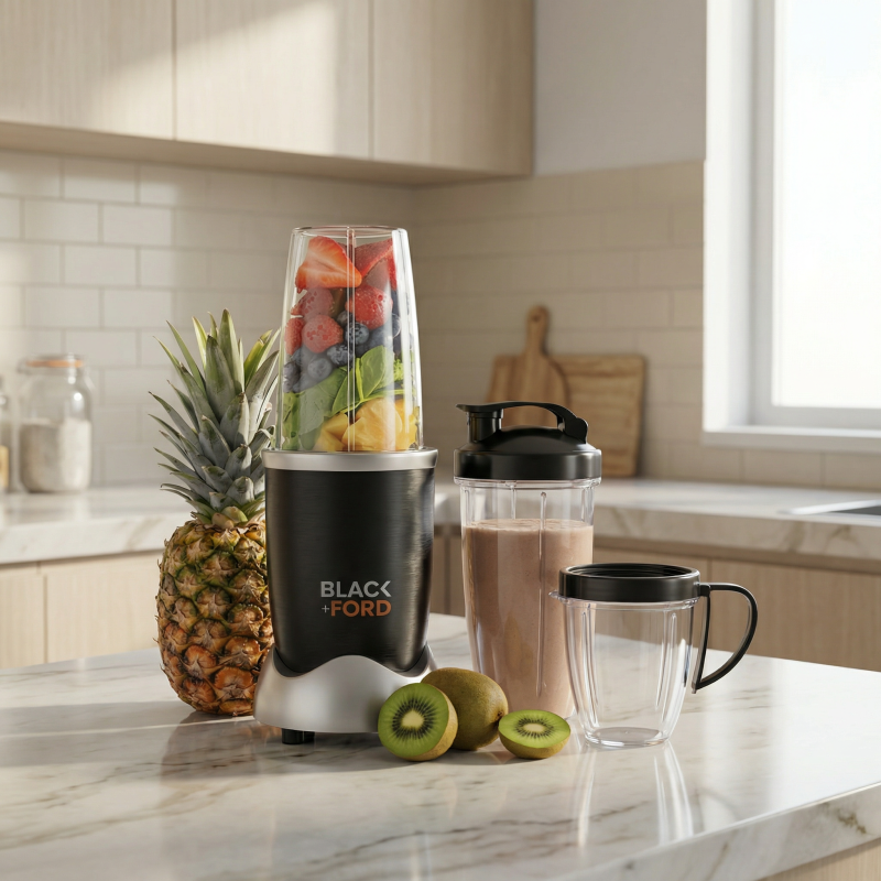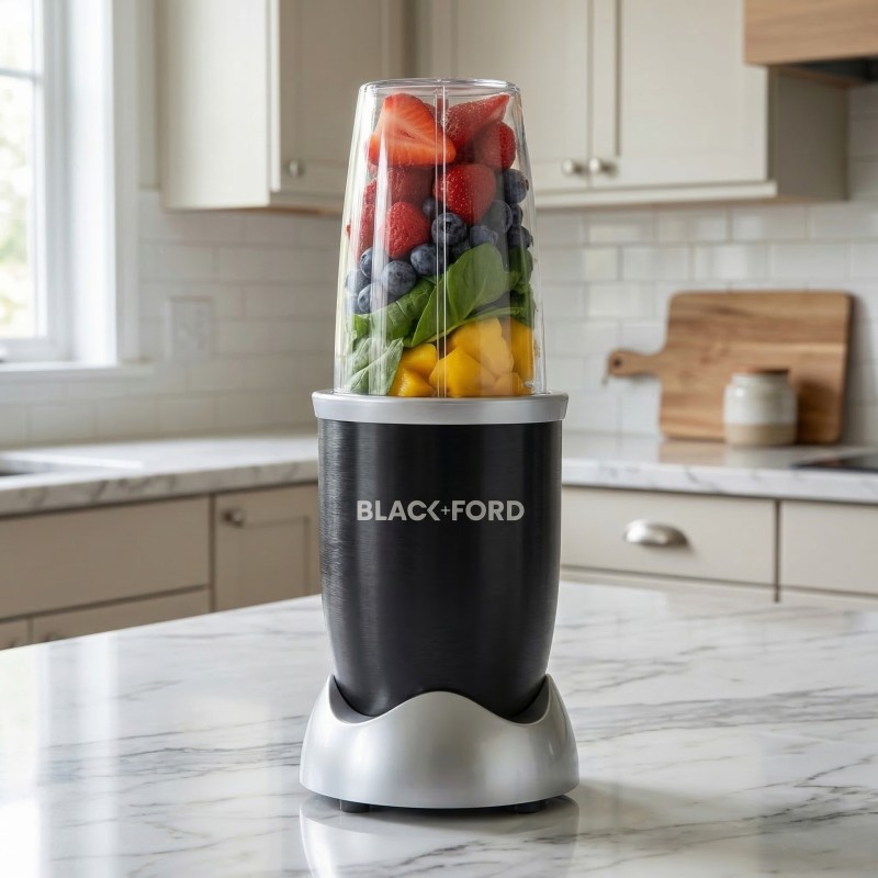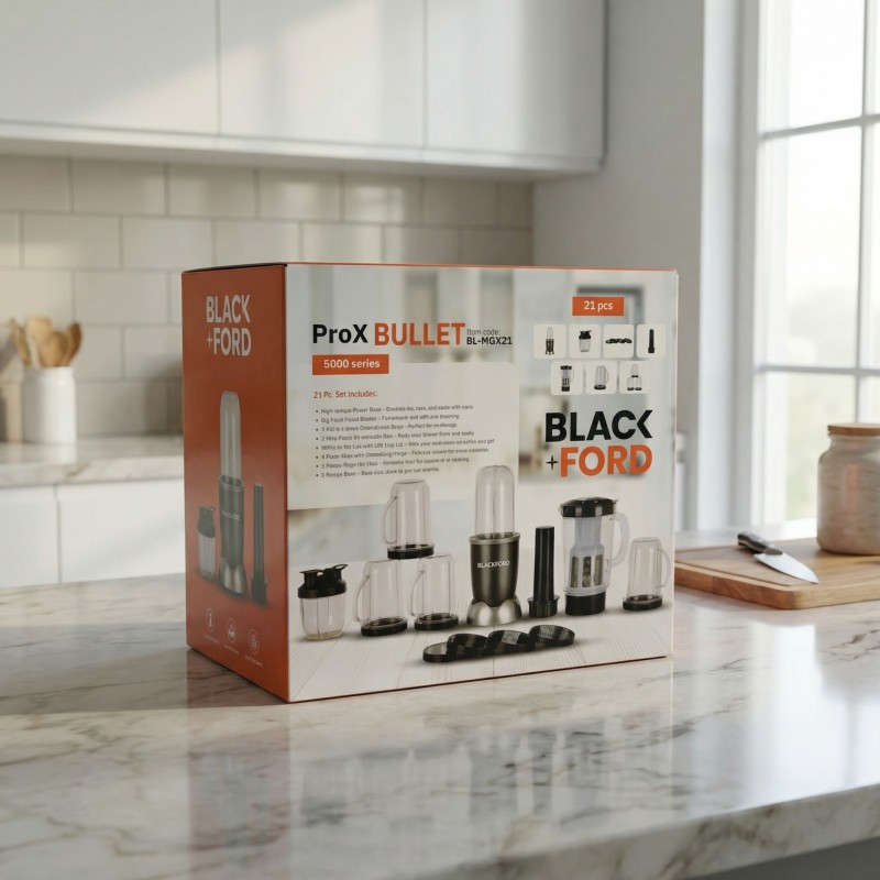 Simplify your morning routine and elevate your kitchen game with the Black+Ford ProX Bullet 5000 Series. This versatile 21-piece system replaces bulky appliances by acting as a blender, juicer, and grinder all in one compact unit. Whether you are crushing ice for a refreshing cocktail, grinding fresh coffee beans, or prepping a nutrient-dense smoothie, the high-torque motor handles it all with ease. Designed for the modern, busy lifestyle, the ProX Bullet features unbreakable to-go cups and party mugs so you can blend and run. Stop struggling with inefficient prep tools and switch to a streamlined solution that meets European safety standards and delivers consistent, professional results every time.