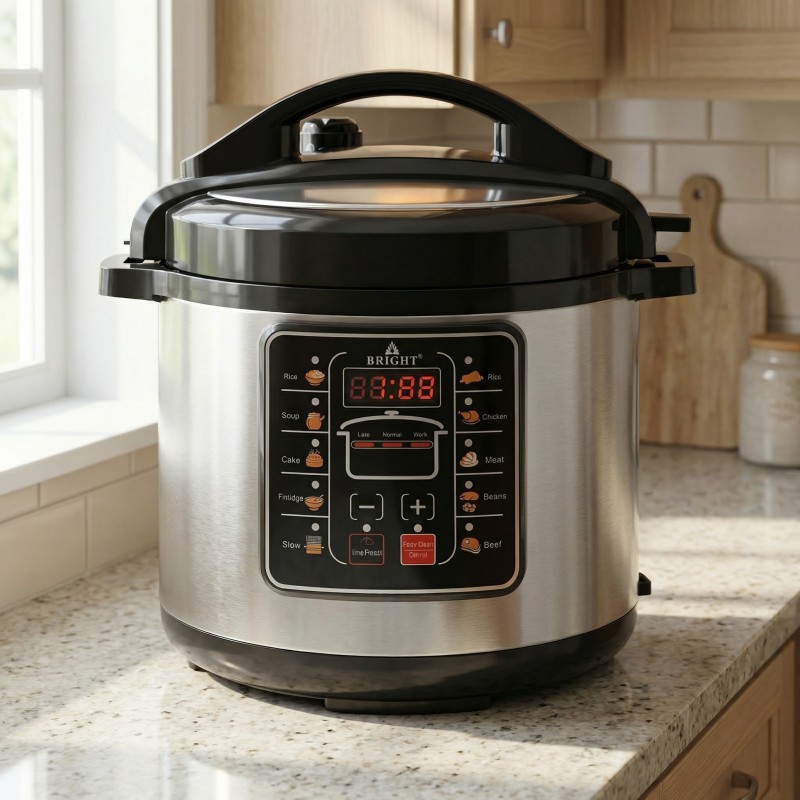Tired of a cluttered kitchen and hours spent over a hot stove? The Bright BR-760 11-in-1 Multifunctional Electric Pressure Cooker is your ultimate kitchen companion, designed to streamline your cooking process. Whether you are whipping up a hearty beef stew, a delicate cake, or perfectly fluffy rice, this versatile appliance replaces multiple gadgets, saving you precious counter space and money. Powered by a high-efficiency 1000W motor, this 6-liter multi-cooker is built for speed without compromising on flavor. The intelligent control technology monitors internal pressure and temperature, ensuring that your meals are cooked consistently and safely.