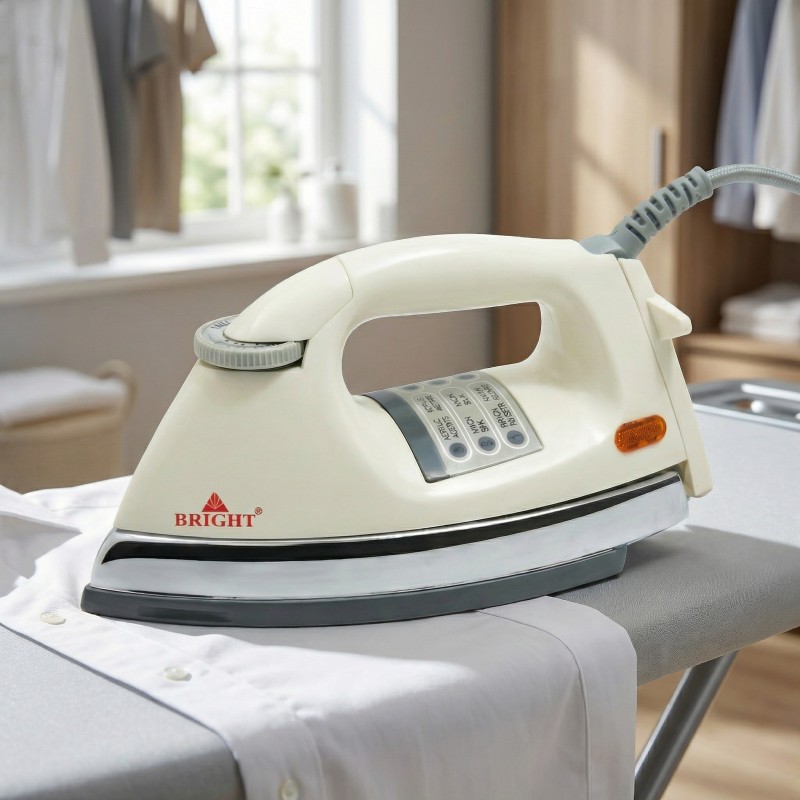 Tired of struggling with lightweight irons that barely touch the wrinkles on your denim and heavy cotton shirts? The Bright BR-1266 Heavy Weight Electric Iron is the classic solution for those who demand a crisp, professional finish at home. Weighing in at a substantial 2kg, this iron uses its own mass to press out the toughest creases, saving your arms from fatigue while delivering superior results on stubborn fabrics like linen and bedsheets. Beyond its impressive weight, the BR-1266 is engineered for performance and safety. The 1200W heating element provides rapid heat-up times, while the sophisticated gold non-stick soleplate glides effortlessly across your garments. With six adjustable temperature settings and a thermostatic pilot lamp, you have complete control over the heat, ensuring that every fabric—from the most delicate silk to the thickest wool—receives the care it deserves. Experience the durability and simplicity of a high-quality dry iron that eliminates the maintenance headaches of steam models.