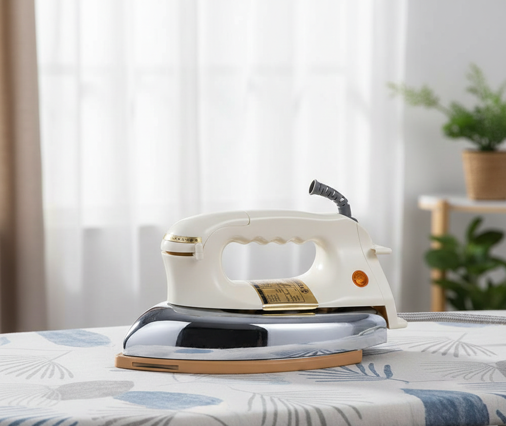 The Bright Heavy Weight Electric Iron BR-1282 is a high-powered, durable iron engineered for superior performance and effortless wrinkle removal. With its heavyweight design, 2200W heating power, and stainless steel soleplate, it delivers excellent heat retention and smooth gliding across thick fabrics like cotton, linen, and denim. Ideal for daily household use, this iron combines professional-grade results with advanced safety features for reliable, comfortable ironing.