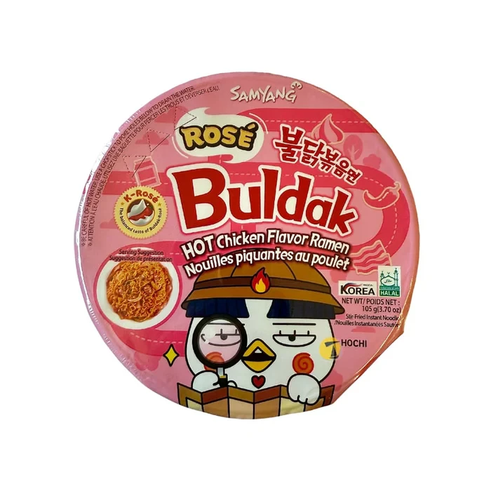 Spice up your meal with the fiery Buldak Rose Hot Chicken Bowl 105g . This instant noodle bowl features chewy noodles and a bold, creamy hot chicken sauce with a unique rose flavor twist. Ready in minutes, it’s perfect for a quick, flavorful, and satisfying meal.