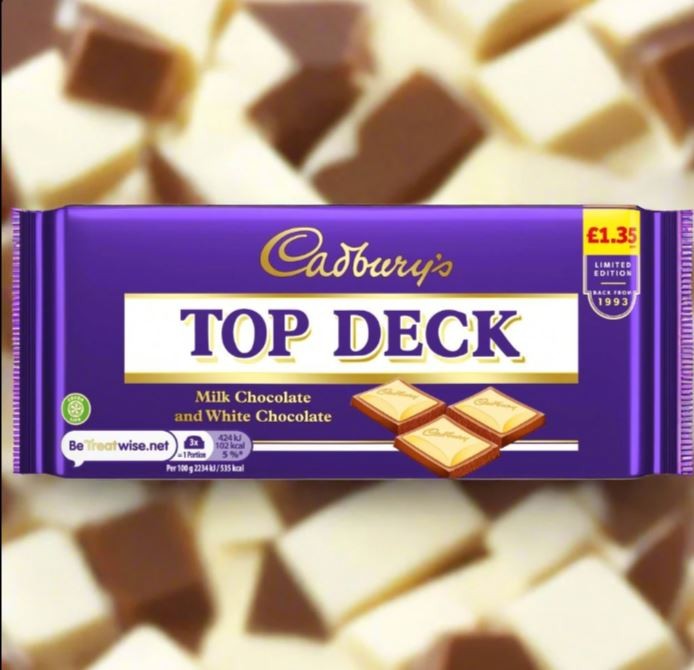 Cadbury Top Deck Milk & White Chocolate Bar – 95g