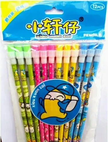 Set includes 12 colorful cartoon pencils