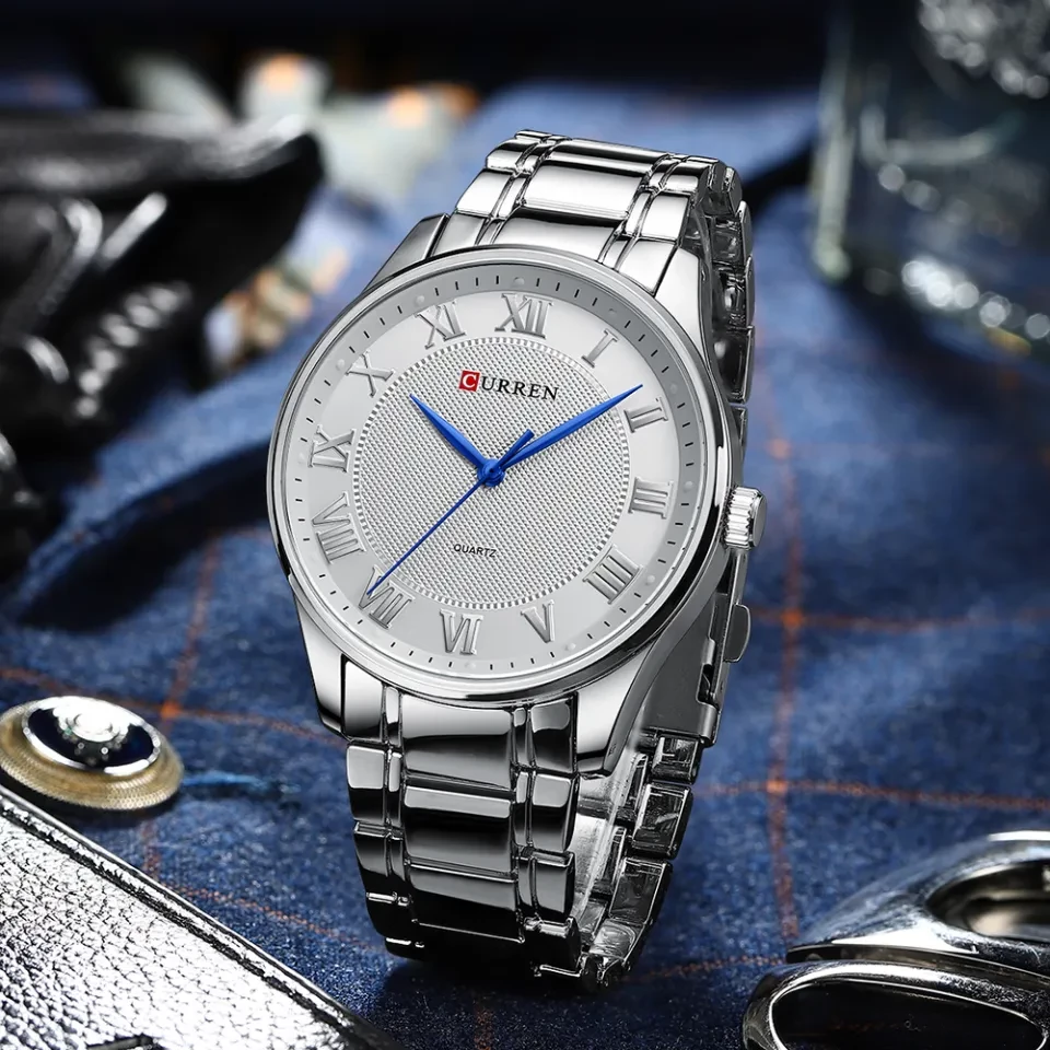 The Curren Classic Silver Men’s Watch is a premium and stylish wristwatch designed for modern men who appreciate elegance and reliability. Featuring a stainless steel case and chain strap, this watch combines durability with a sophisticated look, suitable for office, formal events, casual wear, and gifting.