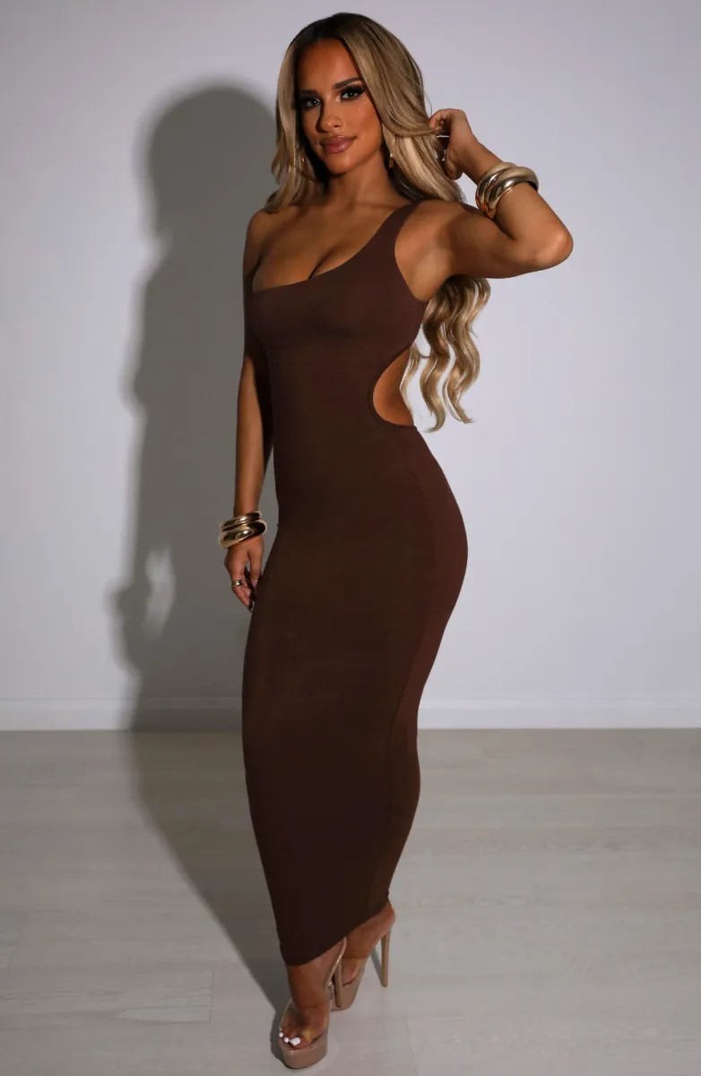 Cutout Back One Shoulder Bodycon Maxi Dress
