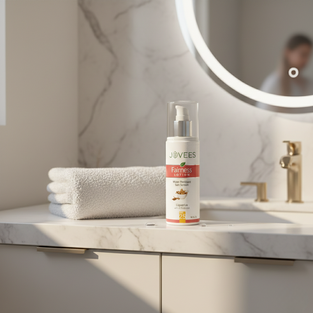 Jovees Sun Screen Fairness Lotion SPF 25 is a lightweight, non-greasy formula designed to protect the skin from harmful UVA and UVB rays while helping maintain an even, brighter-looking complexion.