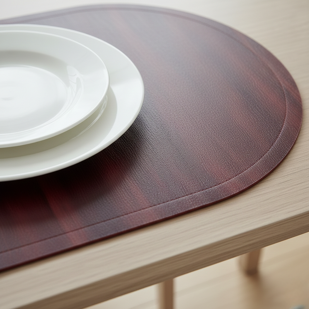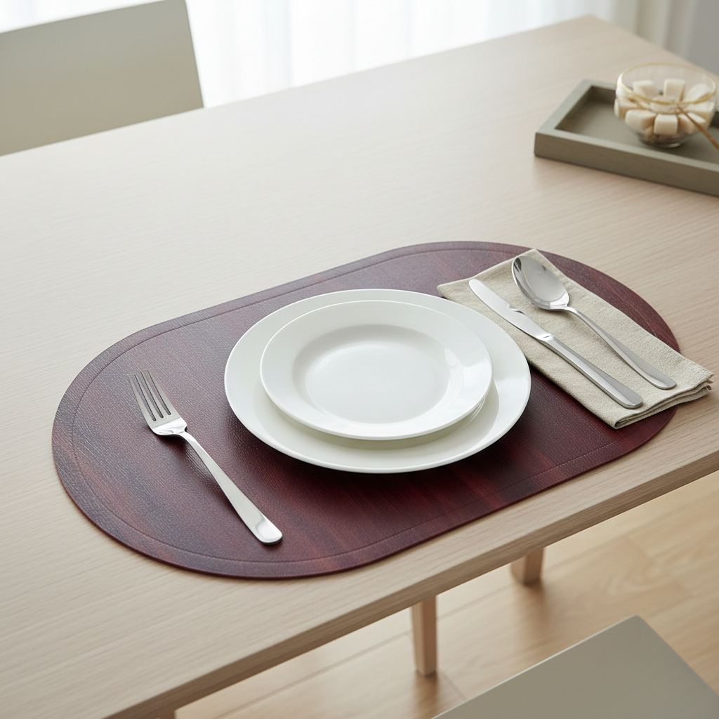 Its oval shape offers better coverage and a softer aesthetic compared to standard mats, making it perfect for both daily meals and special occasions.