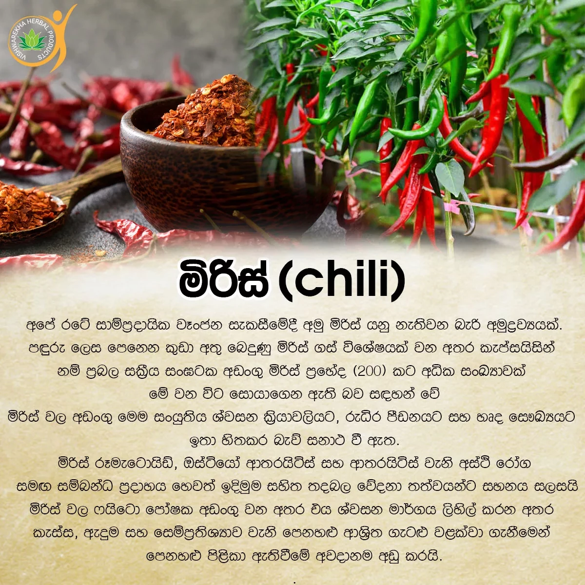 අප ආයතයේ මිරිස්කුඩු , කෑලි මිරිස් කුඩු , තුනපහ සහ විශේෂ කළු කුඩු , බදින ලඳ උළුහාල් එකකින් සමන් විත වේ.