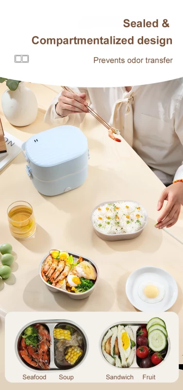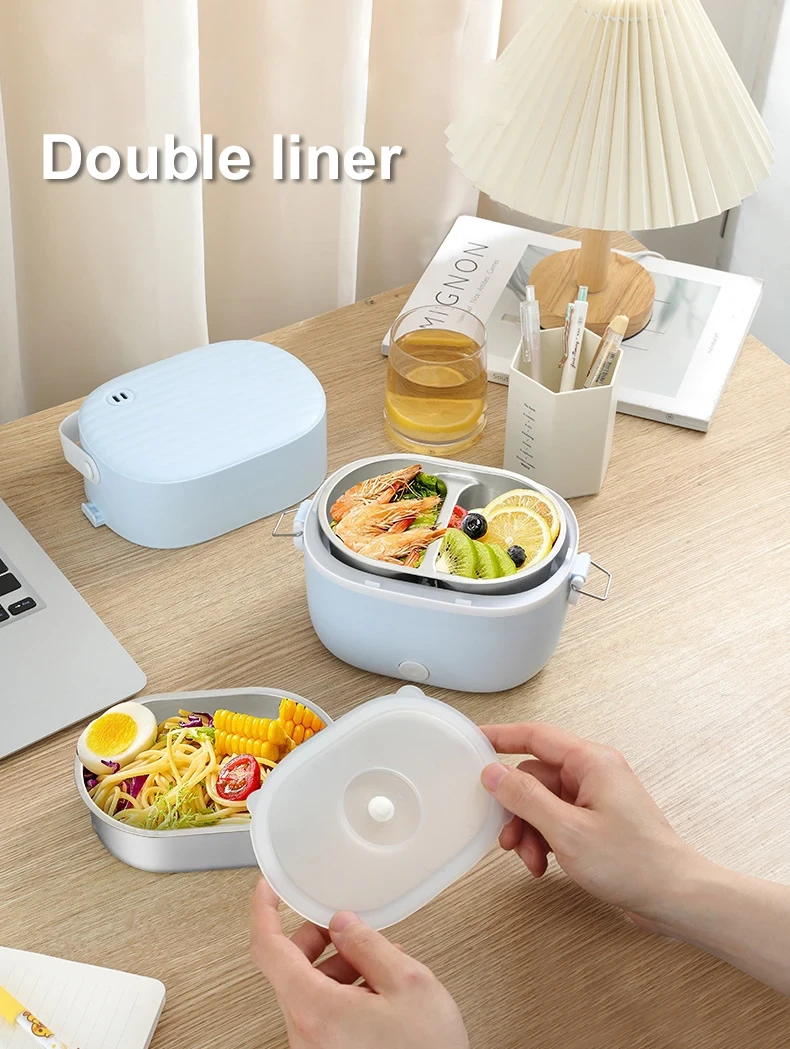 Featuring a double-layer design, it allows you to pack multiple items like rice, vegetables, and proteins without mixing flavors. The electric heating function ensures your meal is warmed evenly, saving you time and hassle compared to microwaving.