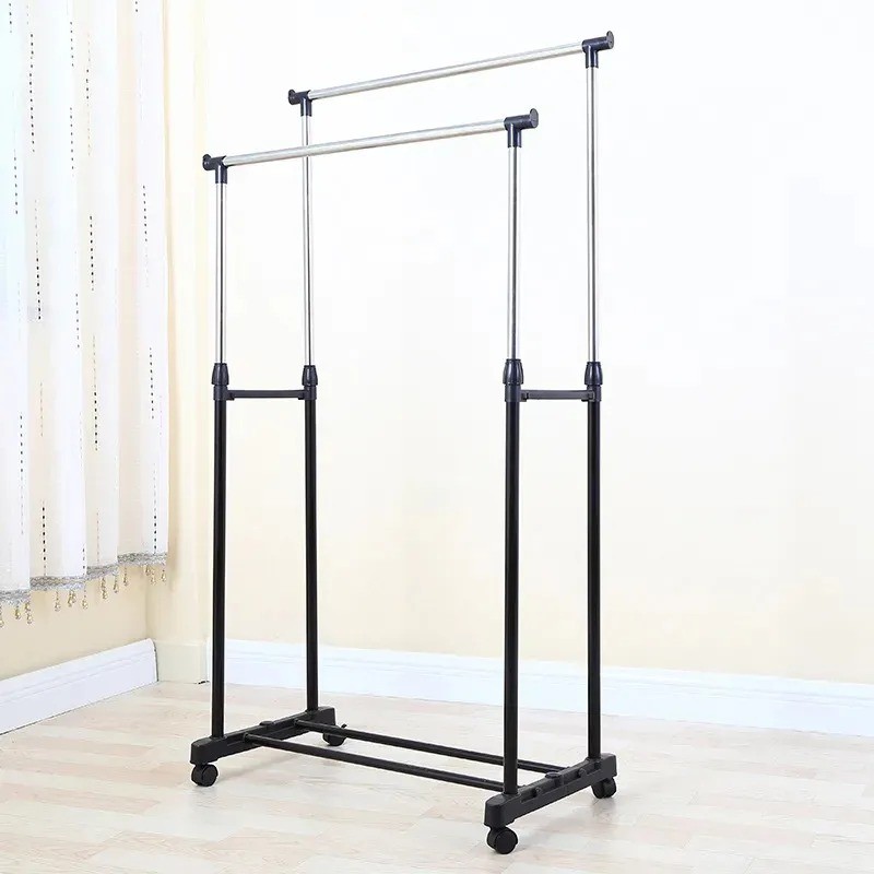 Organize your clothes neatly with the Double Pole Cloth Rack.