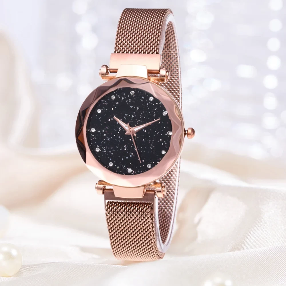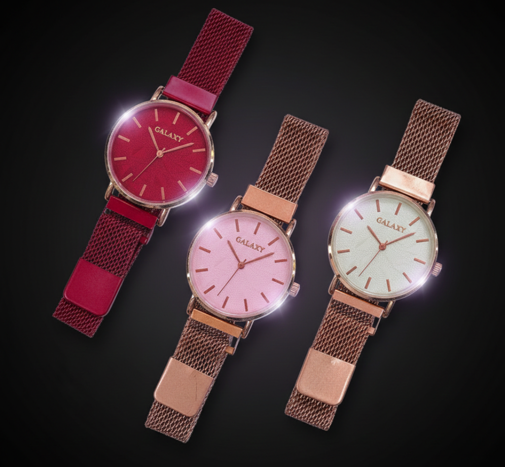 The Galaxy Magnetic Ladies Watch is a stylish and modern timepiece designed for women who love elegance and comfort. Featuring a premium magnetic mesh strap, this watch is easy to wear and adjust, offering a secure fit without traditional buckles.