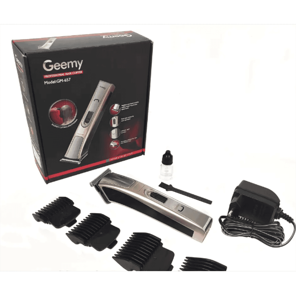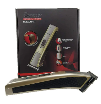 Achieve salon-quality haircuts with the Geemy Professional Hair Clipper GM-657. Built with a powerful motor and sharp stainless steel blades, this clipper ensures smooth and precise cutting for all hair types. Its ergonomic design makes it comfortable to hold, while the rechargeable battery provides long-lasting cordless use.
