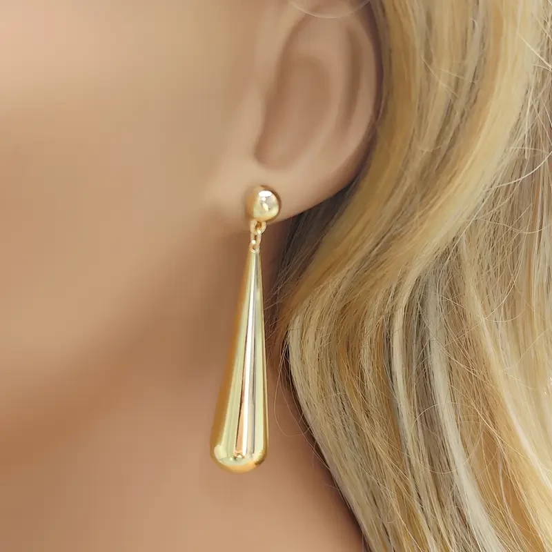 Gold Long Teardrop Earrings are designed to add a touch of elegance and sophistication to your look. Featuring a sleek and elongated teardrop shape with a polished gold-tone finish, these earrings create a graceful and eye-catching style.