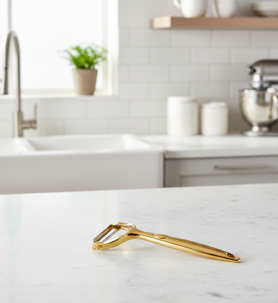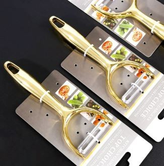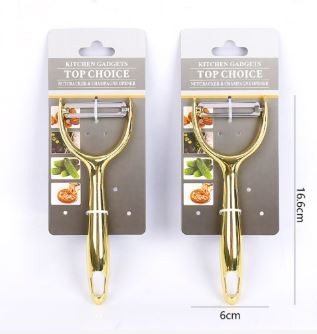 Add a touch of elegance to your kitchen tools with the Gold Metal Peeler – a stylish and functional vegetable peeler designed for precision and comfort. Featuring a sharp stainless steel blade and a sleek gold-toned handle, this peeler effortlessly removes skin from potatoes, carrots, apples, and more. Perfect for home cooks who appreciate both performance and aesthetic appeal.