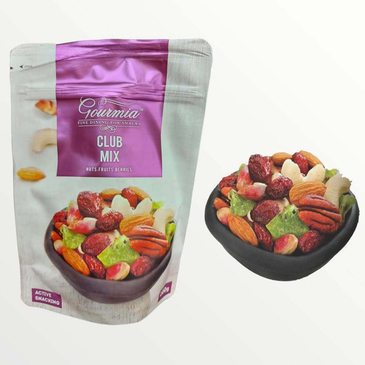 Enjoy a premium blend of roasted nuts and dried fruits with the Gourmia Club Mix 200g. This delicious mix combines almonds, cashews, raisins, and other select nuts and fruits, offering a perfect balance of crunch, sweetness, and savory flavor in every bite.
