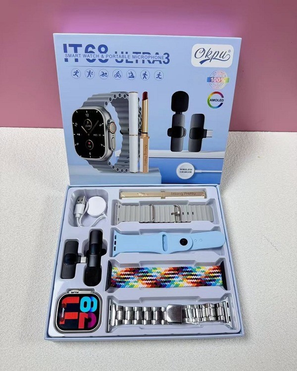 The IT68 Ultra 3 Smart Watch combines style and functionality with comprehensive health and fitness tracking. Monitor your heart rate, blood pressure, SpO2, and track multiple sports activities. With its sleek design and waterproof body, it’s perfect for daily wear, workouts, and outdoor activities.