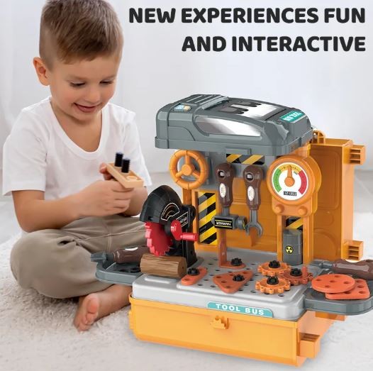 The 3 in 1 Tool Bus is a fun and educational toy vehicle designed to combine imaginative play with practical learning for young children. This colorful, interactive toy bus transforms into three different modes: a moving truck, a tool workshop, and a storage chest for tools and accessories. Featuring a realistic design with working wheels, opening doors, and a collection of wooden tools, it encourages role-playing, fine motor development, and creative storytelling.