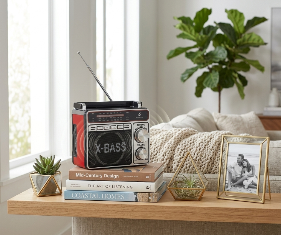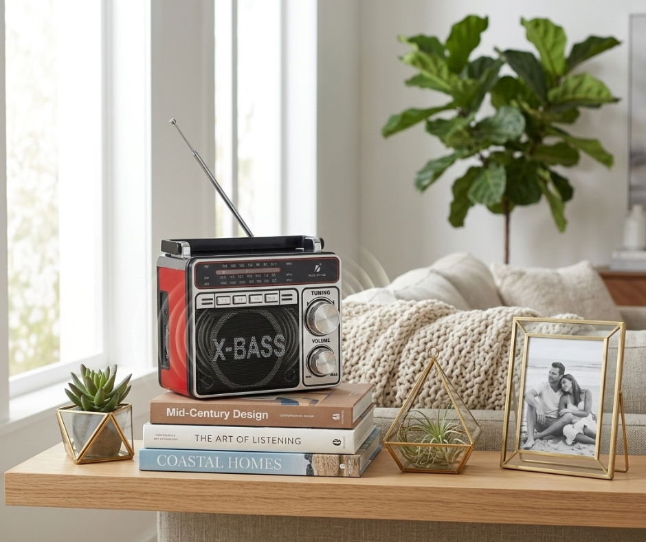The KTF-1466 X-Bass Classic Type Radio Speaker combines vintage radio style with modern audio technology. It features Bluetooth connectivity for wireless music playback from smartphones, tablets, and other devices.