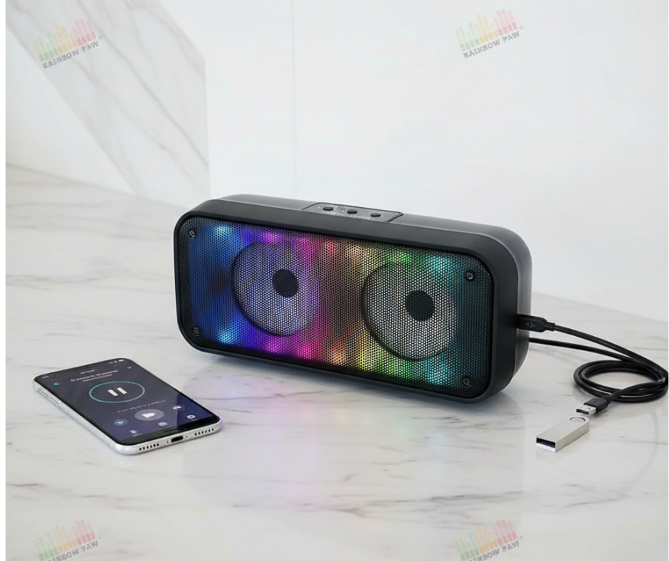 With multiple connectivity options including Bluetooth, USB, TF card, AUX, and built-in FM radio, you can enjoy music your way. The rechargeable battery ensures long-lasting playback without being tied to a power outlet.