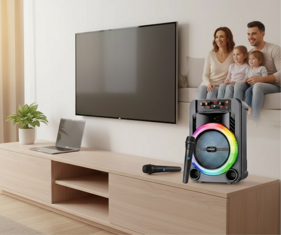 With Bluetooth connectivity, USB and TF card support, AUX input, and built-in FM radio, you can play music from different sources easily. The rechargeable battery ensures long-lasting entertainment for parties, gatherings, travel, and home use.