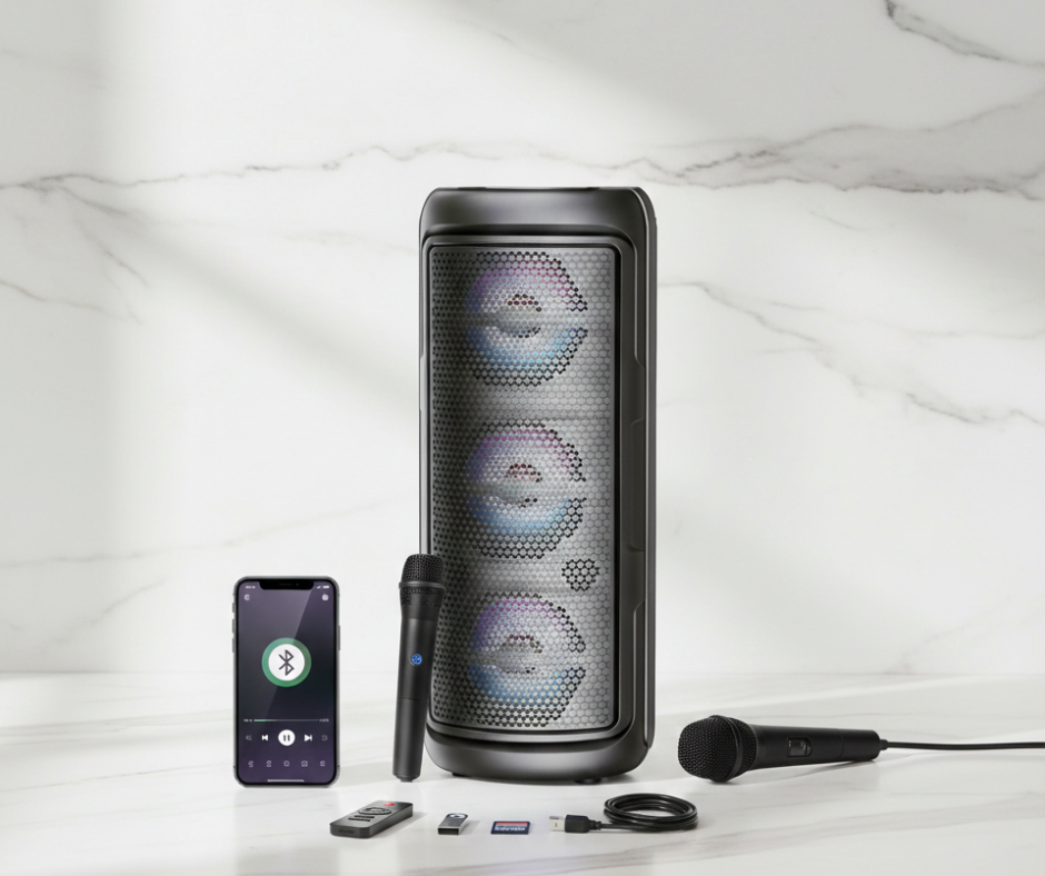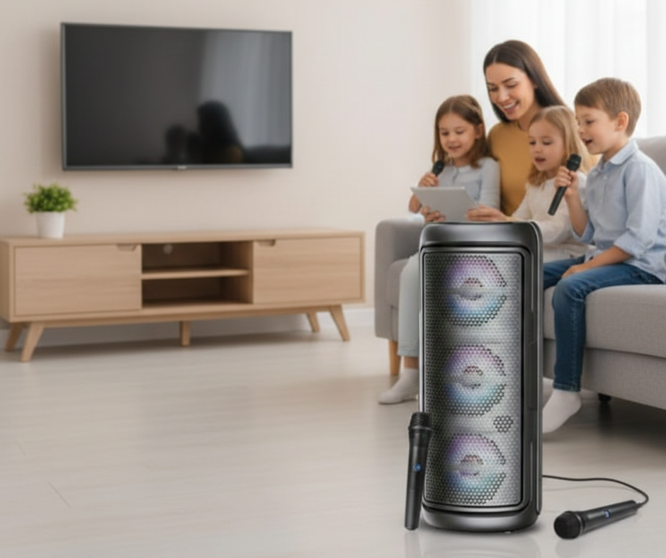 Enjoy music and karaoke anytime with the KTS-2279 Karaoke Portable Speaker With Mic. Designed for parties, family gatherings, and outdoor events, this speaker delivers strong bass and clear sound performance.