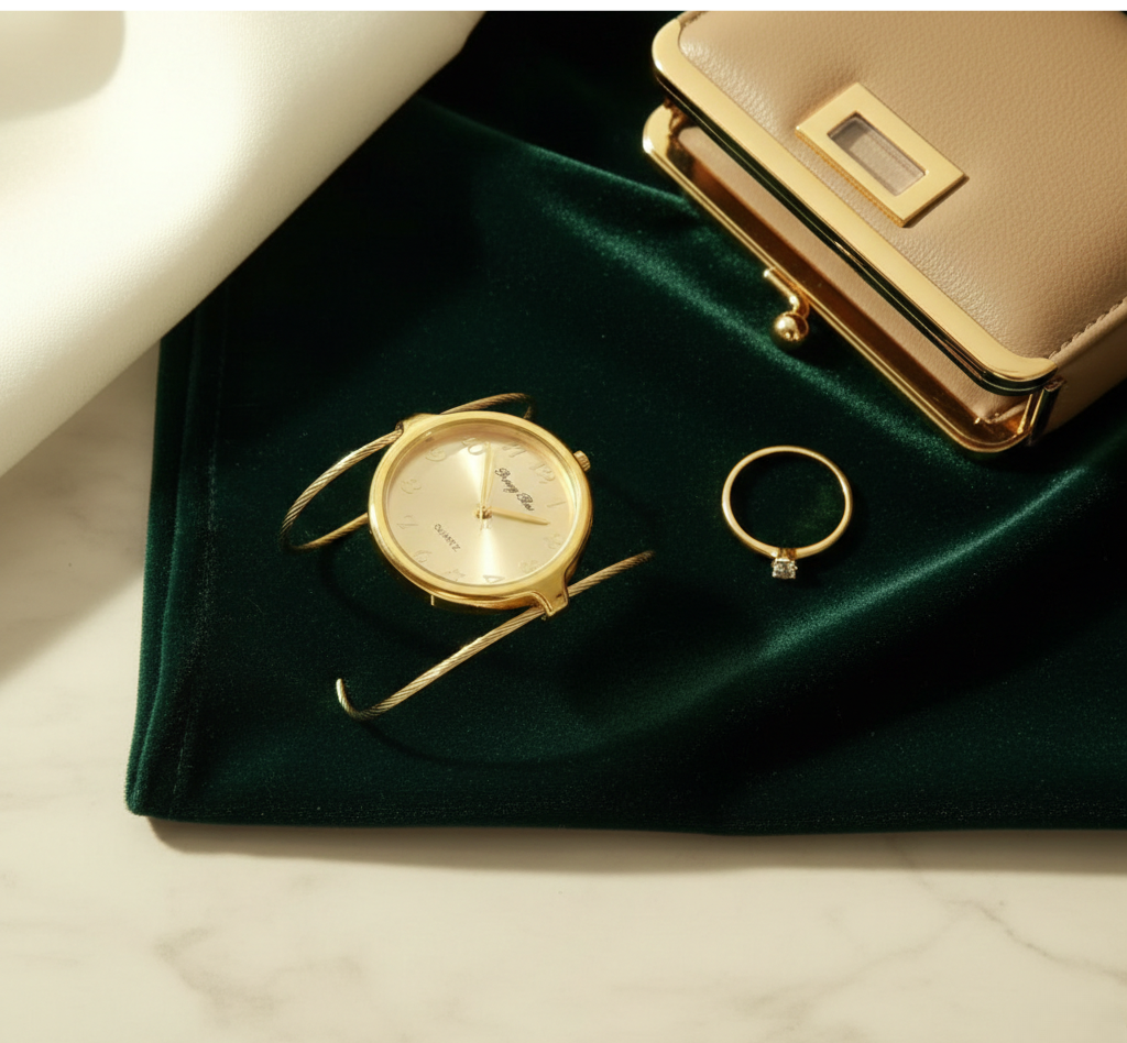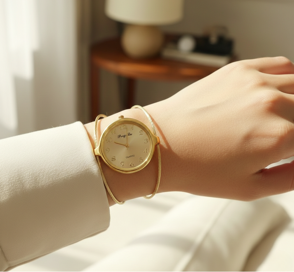 1 × Ladies Bangle Watch – Big Dial Gold Bracelet