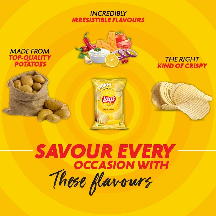 Loved around the world, Lays Classic Salted remains the go-to snack for those who enjoy light, crispy, and irresistibly tasty chips.