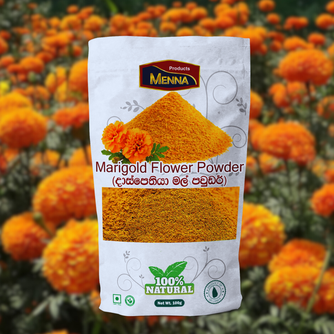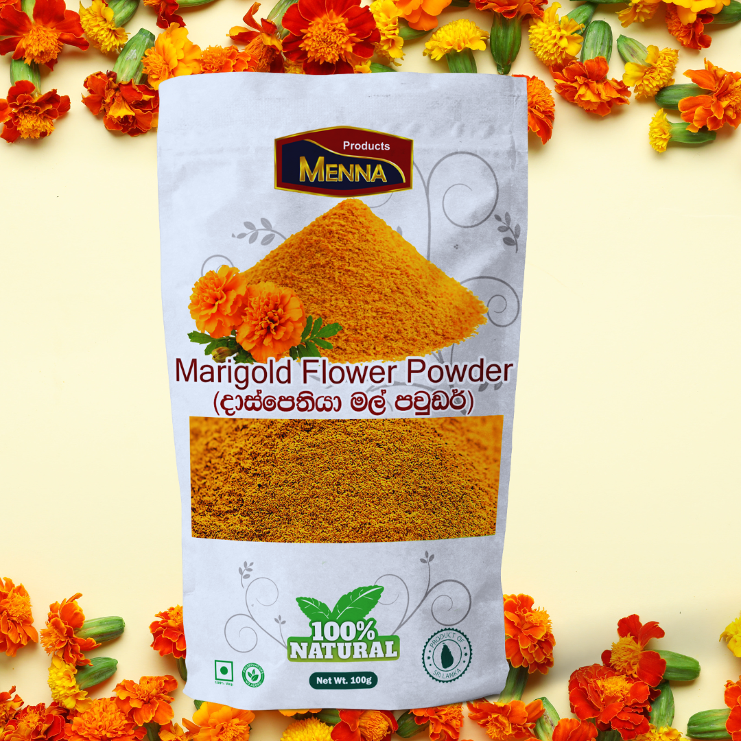 Marigold Flower Powder (100g) is a pure, natural powder made from high-quality Marigold petals, packed with antioxidants and anti-inflammatory properties. It’s a versatile product ideal for creating DIY beauty solutions like face masks, skincare treatments, and hair care.