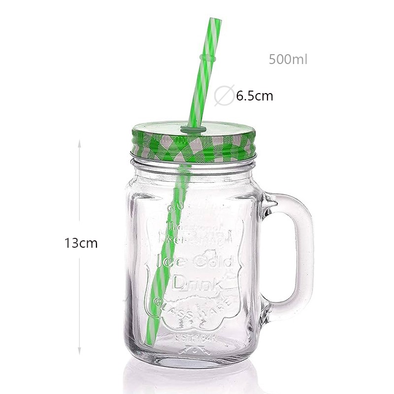The Mason Jar With Straw and Lid – 500ml is a stylish, reusable glass jar ideal for smoothies, juices, iced tea, and other beverages, featuring a secure lid and straw.